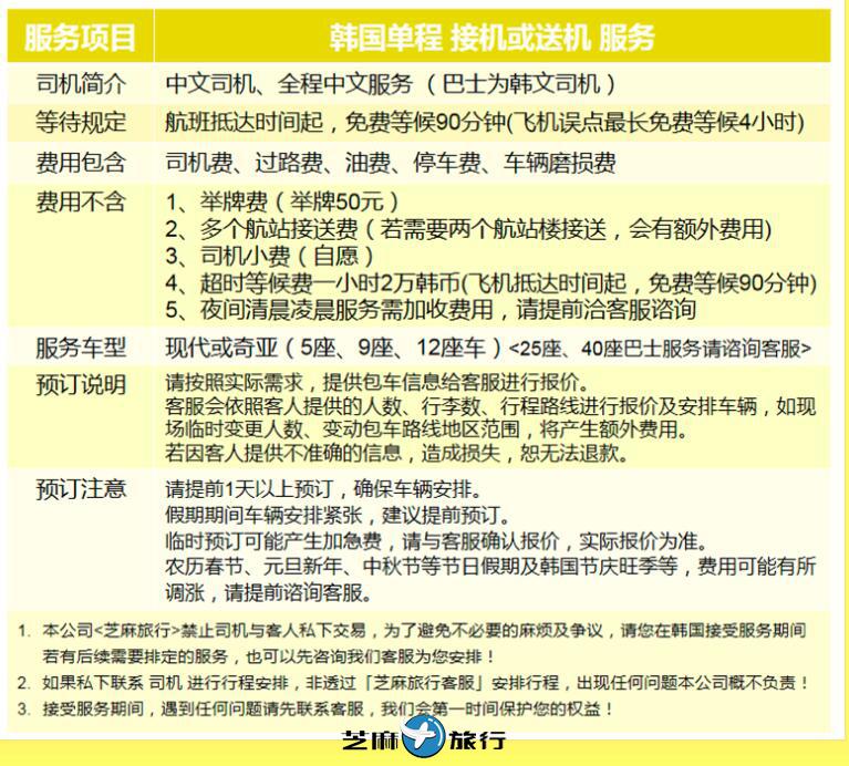 是韩国注册的正规旅行社,提供韩国仁川机场专车接机、送机服务。司机是中国人为主,精通中韩文,沟通无压,沿途景点讲解,热心解答客人问题。