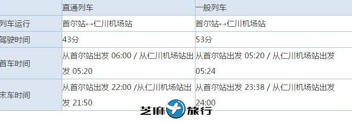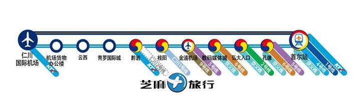 韩国仁川机场到首尔站的所有交通方式车票费用: 10000韩币
